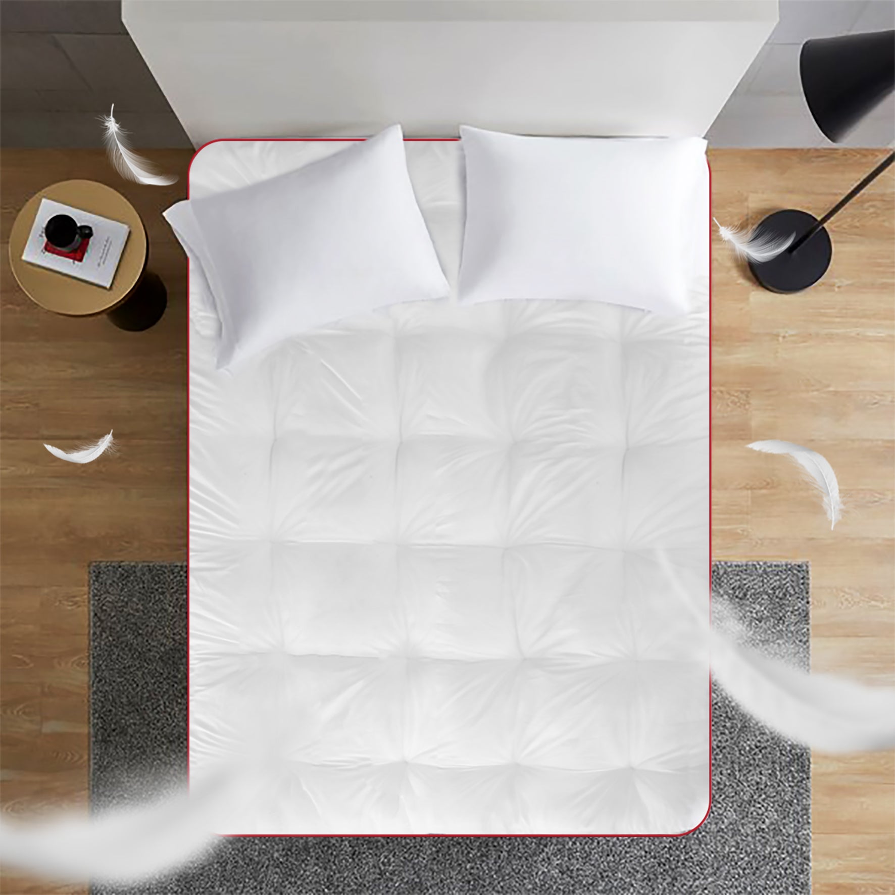 manufactured with a new technology, as down alternative for more comfort, quiet and luxury hotel sleep feel .